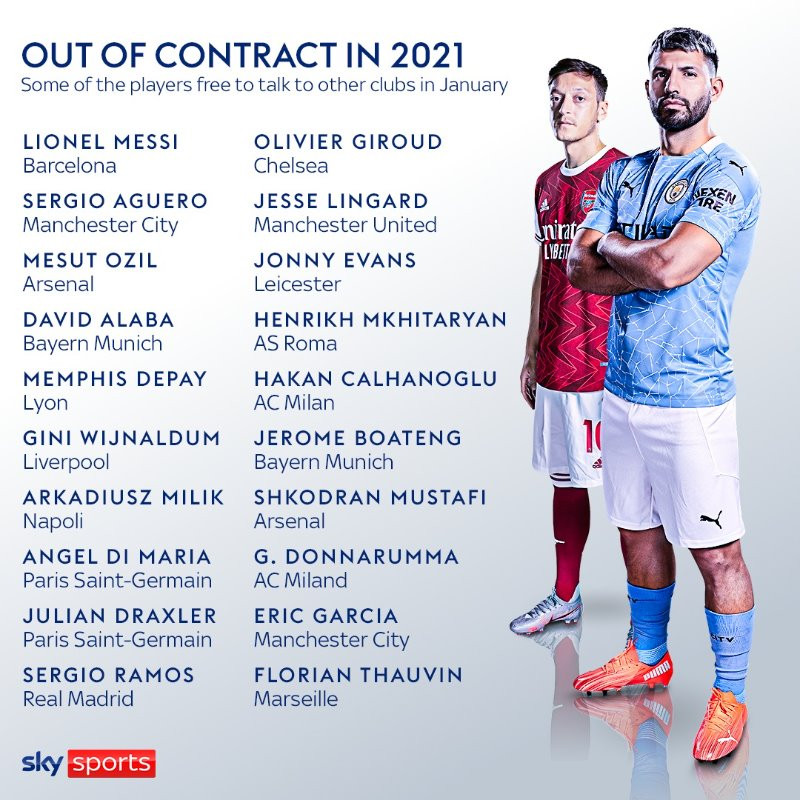 В конце сезона многие известные футболисты столкнутся с истечением срока действия их контрактов в июне следующего года. Если они не продлят свои соглашения, они получат статус свободных агентов и смогут вести переговоры с любыми клубами. Вот список наиболее заметных игроков, находящихся в такой ситуации: