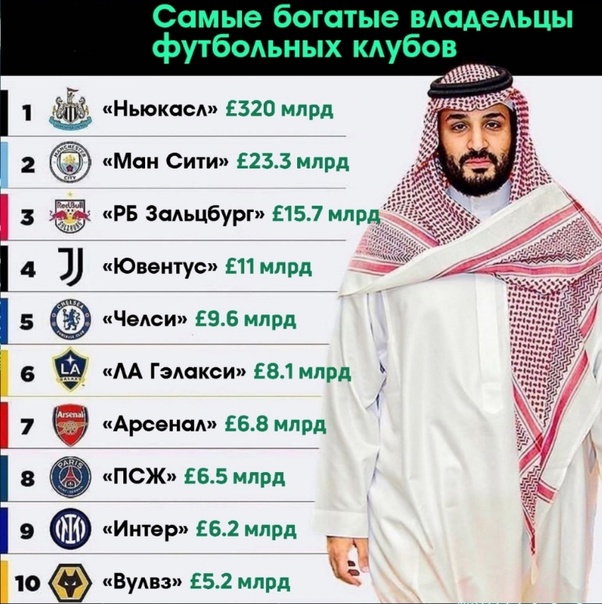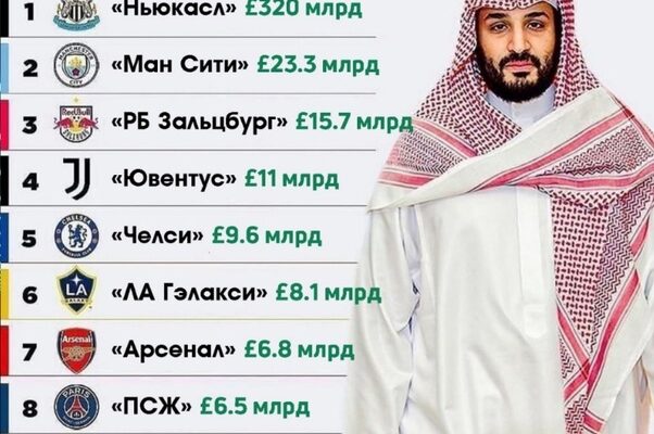 | 1 | Ньюкасл | Государственный инвестиционный фонд Саудовской Аравии | £489 млрд |