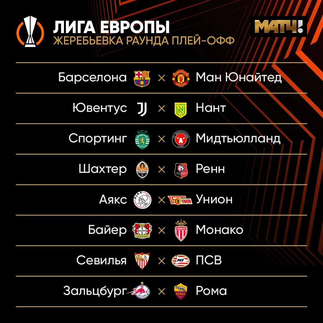 Основные моменты жеребьевки плей-офф Лиги Европы: